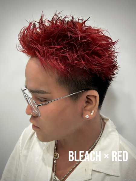 ブリーチをしてから色を乗せることで、クリアで鮮やかな赤◎
